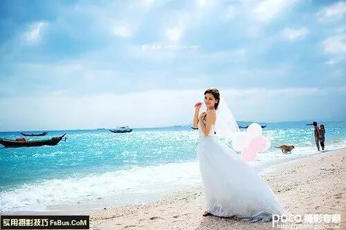 拍摄心得:说实话除了拍摄这组海滩新娘人像我会根据场景选择点测光外,平时也没有太多注意用那种测光方式,也没用曝光锁。因为最早的时候学的是胶片机,所以习惯判断参数,现在用数码就更方便了,我们能够很准确的控制曝光。拍摄这组片那天刚好是多云,偶尔露点阳光拍些小逆光很漂亮,整体有减曝光,测光的话不容易达到理想效果,虽然我的片子也很少用后期,但这组原片灰了些,所以后期稍加处理,调色阶、曲线亮起来对画面就有很好调节作用。