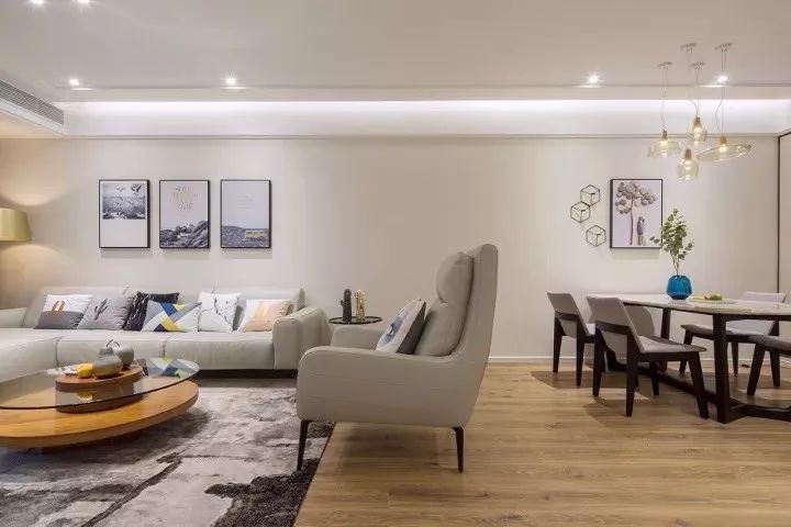 灰白色调搅拌得很到位,由抱枕、挂画、地毯等装饰突出艺术感,同时又不显凌乱。