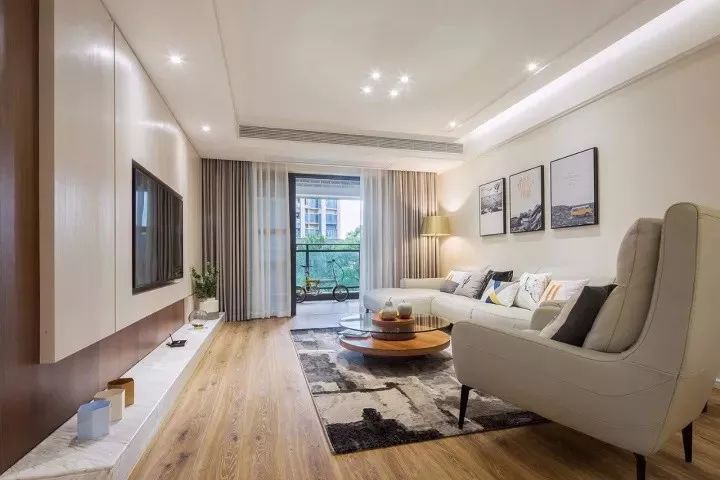 木地板带有天然的纹理与木眼,自然质朴中体现了现代风格温润气质。