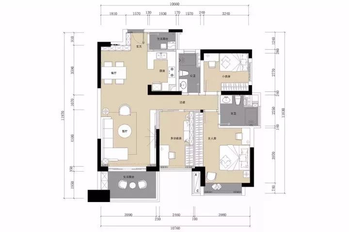 客厅与餐厅隔着过道,互相保持最佳距离。